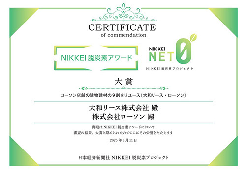 The initiative targets stores built with the “DL-e Method,”*2 jointly developed by Daiwa Lease Co., Ltd. and Lawson. Both companies jointly received the Grand Prize at the NIKKEI Decarbonization Awards 2024.
