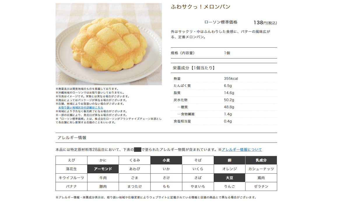 Lawson displays the calories, allergen information, and nutritional information for some products on the Product Information page of our official website.